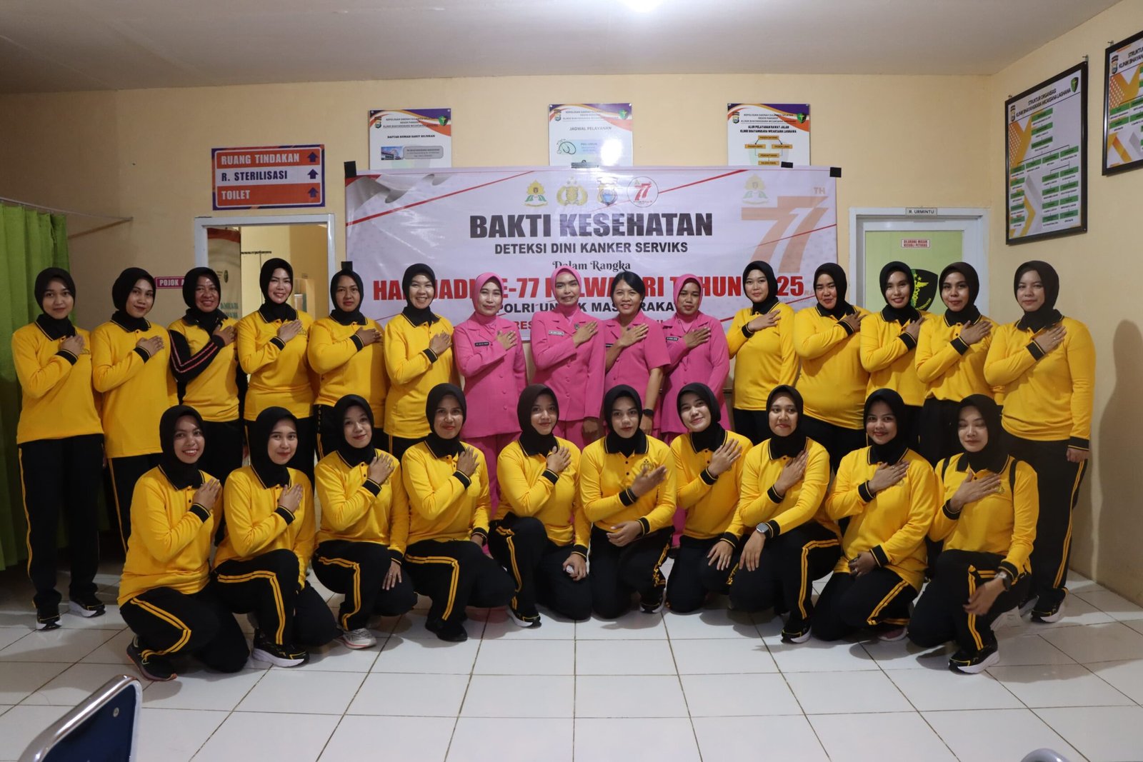 “Kegiatan ini merupakan bagian dari rangkaian peringatan HUT Polwan ke-77 sekaligus wujud nyata kepedulian Polwan terhadap kesehatan perempuan. Dengan pemeriksaan pap smear, kita harapkan deteksi dini dapat dilakukan sehingga pencegahan maupun pengobatan bisa lebih cepat dilakukan,” ungkap Kapolres.