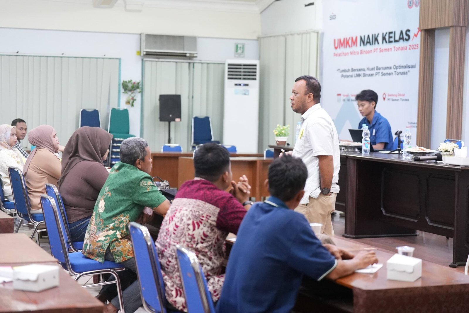 “Program ini merupakan wujud komitmen PT Semen Tonasa dalam membangun ekosistem UMK yang tangguh dan berdaya saing di Kabupaten Pangkep. Melalui pendekatan bertahap, kami tidak hanya menghadirkan ruang belajar bersama, tetapi juga menciptakan mekanisme penguatan yang sistematis sesuai tantangan yang dihadapi para pelaku UMK. Kurikulum dirancang secara adaptif berdasarkan level dan kebutuhan masing-masing UMK, dilengkapi dengan indikator keberhasilan serta metode penilaian yang jelas untuk mengukur proses naik kelas. Dengan demikian, program ini menjadi strategi berkelanjutan untuk memastikan UMK binaan mampu tumbuh, berkembang, dan memberi kontribusi nyata bagi pembangunan daerah.”ujarnya.