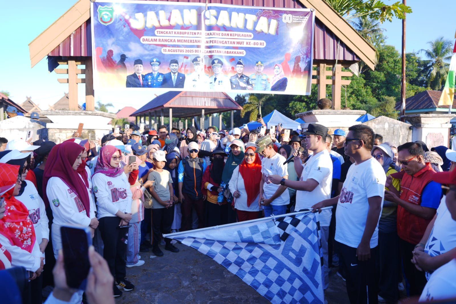 Bupati Pangkep Muhammad Yusran Lalogau, didampingi Wakil Bupati Abd Rahman Assagaf, Forkopimda, dan pimpinan Organisasi Perangkat Daerah (OPD), secara resmi melepas peserta jalan santai.