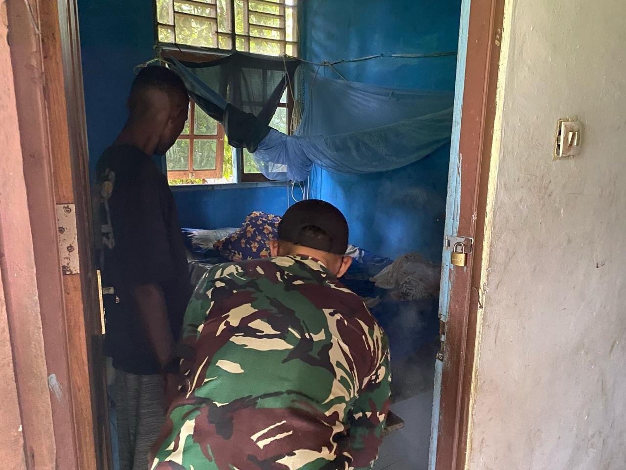 Bidik-jurnalis.com, Keerom – Dalam upaya mencegah penyebaran malaria, Satgas Yonif 131/Brajasakti melalui Pos Ampas melaksanakan kegiatan fogging di rumah-rumah warga Kampung Ampas, Distrik Waris, Papua, pada Minggu (27/04/2025).