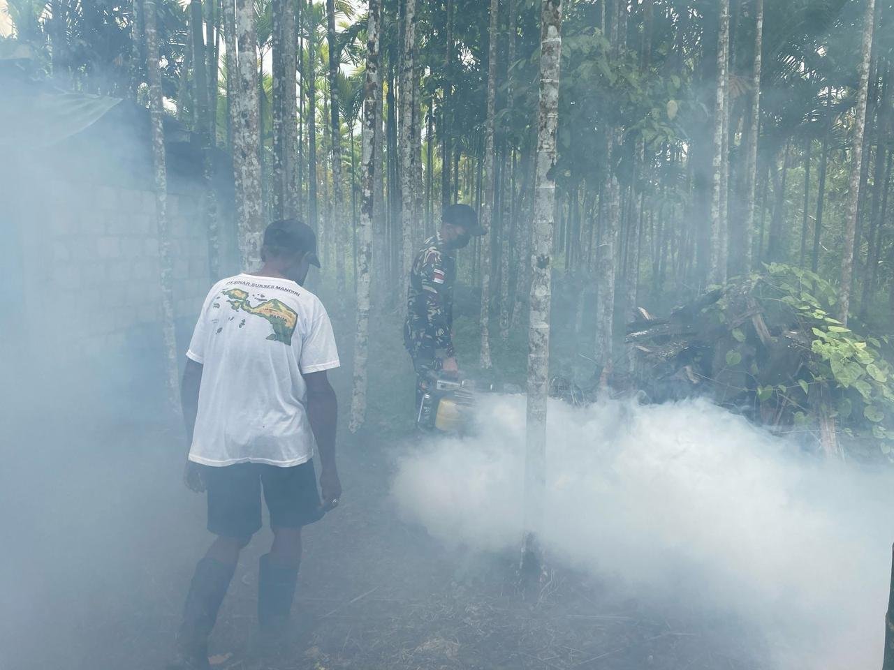 Satgas Yonif 131/Brajasakti Lakukan Fogging di Kampung Ampas Perbatasan Papua