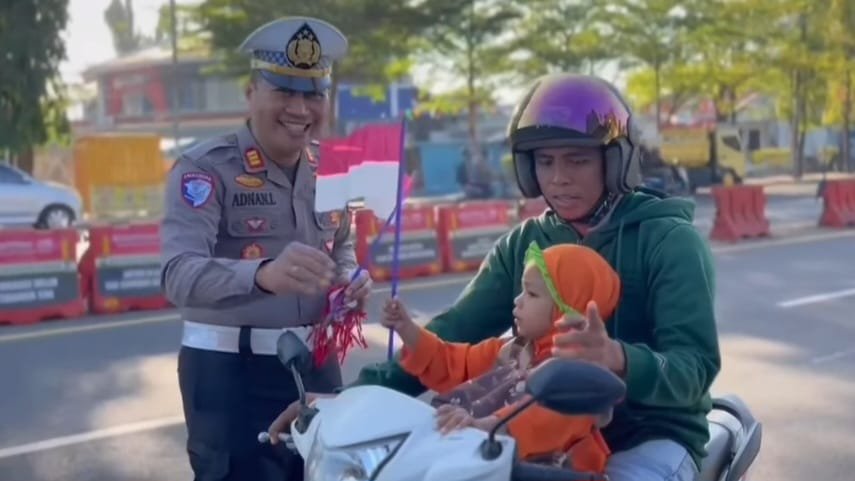 Tak hanya sekadar membagikan bendera, personel Satlantas juga menyampaikan pesan-pesan keselamatan berlalu lintas, serta mengimbau pengguna jalan untuk selalu tertib dalam berkendara demi menciptakan Kamseltibcarlantas yang aman dan nyaman.