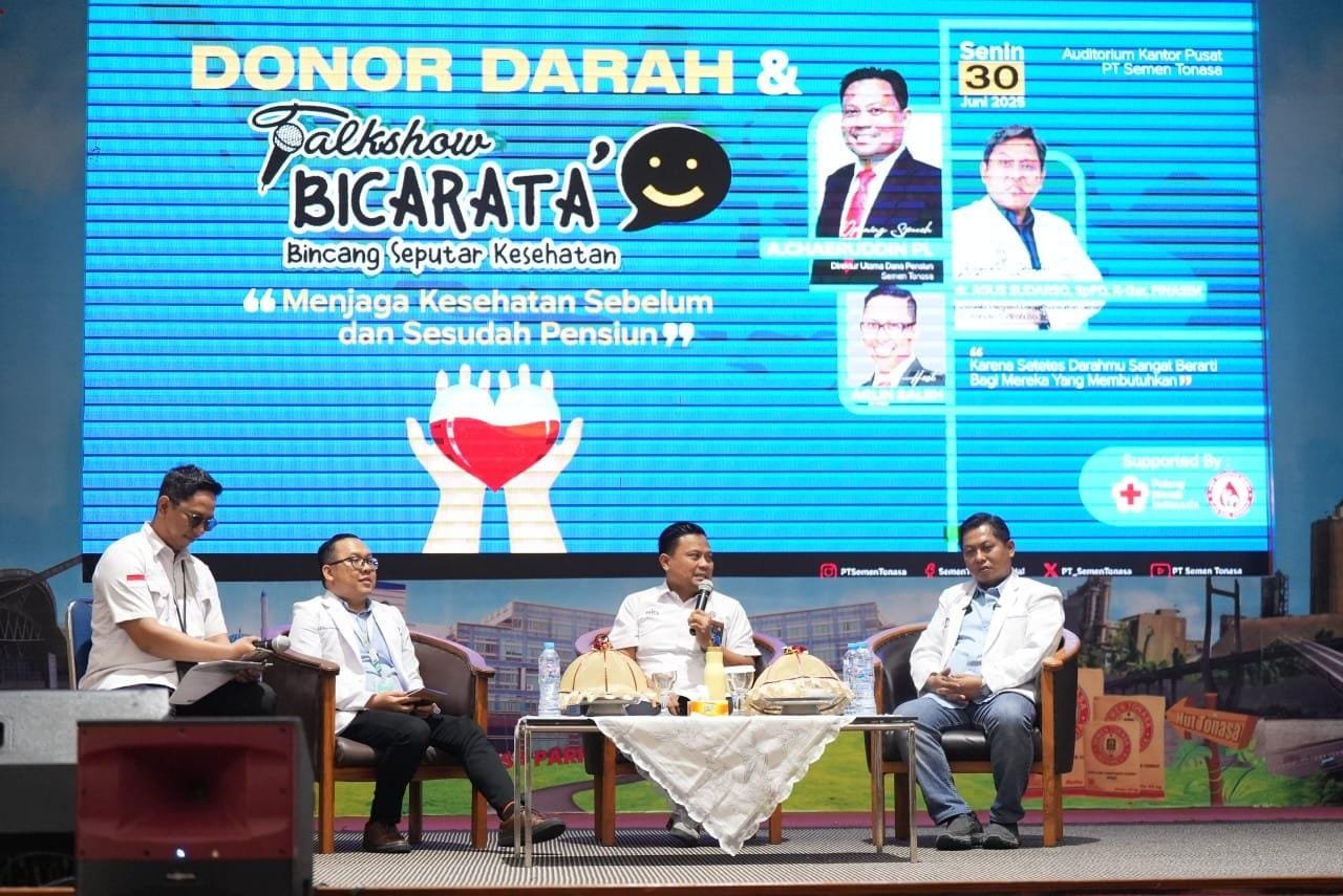 Bidik-jurnalis.com, Pangkep – Sebagai wujud kepedulian terhadap kesehatan dan kemanusiaan, PT Semen Tonasa melalui Semen Tonasa Medical Center (STMC) menggelar kegiatan donor darah yang dirangkaikan dengan talkshow kesehatan bertajuk “Bicarata” (Bincang Seputar Kesehatan) dengan tema “Menjaga Kesehatan Sebelum dan Sesudah Pensiun”, yang berlangsung di Auditorium Kantor Pusat PT Semen Tonasa, Senin (30/6).