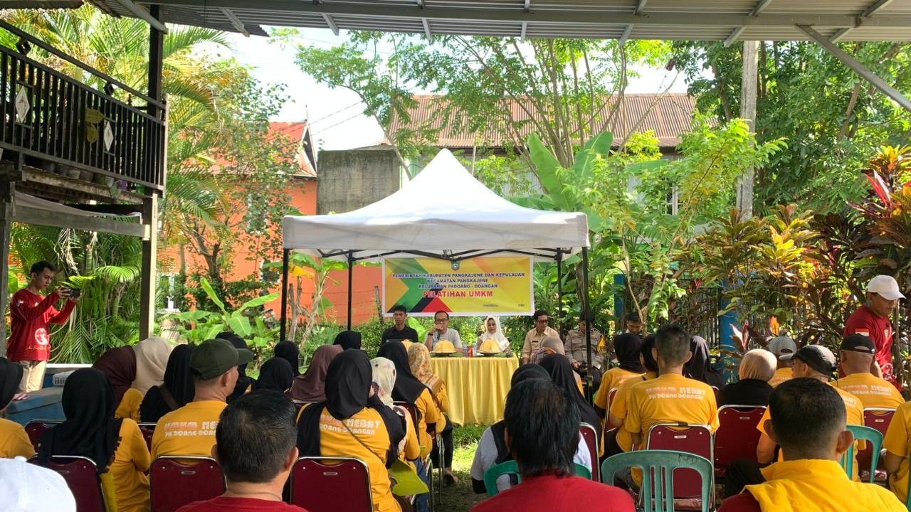 Bidik-jurnalis.com, Pangkajene ~ bertempat di salah satu halaman rumah warga binaan jln Cendana timur, Bhabinkamtibmas Kel padoang-doangan Aipda  Mappaenre Menghadiri undangan Kegiatan Pelatihan bagi pelaku UMKM Kelurahan Padoang-Doangan, Jum’at 12 Desember 2025