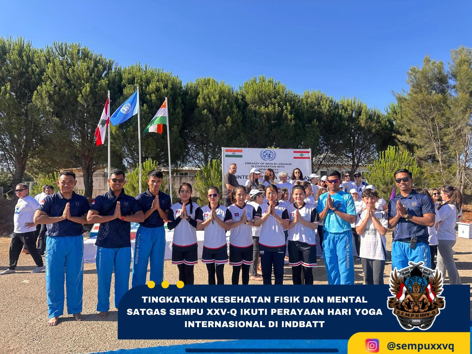 Dengan semangat kebersamaan dan semangat menjaga kesehatan secara holistik, Satgas SEMPU XXV-Q mengucapkan, “Selamat Hari Yoga Internasional”. Kegiatan ini menjadi momen penting untuk memperkuat harmoni dan solidaritas antar kontingen sekaligus sebagai sarana pembinaan fisik dan mental bagi pasukan Garuda yang bertugas di Lebanon.