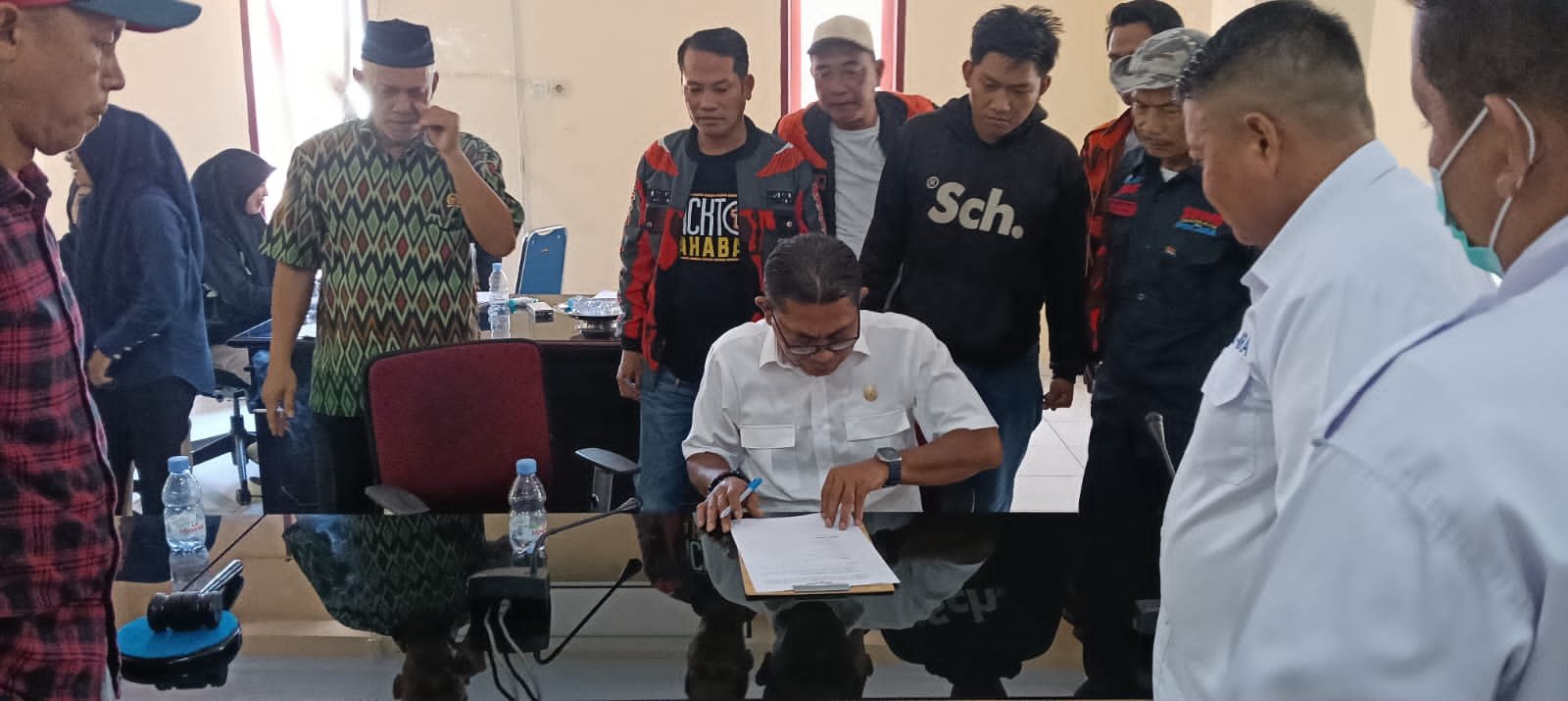 Dalam RDP tersebut perwakilan massa menyerahkan surat pernyataan sikap yang ditindaklanjuti dengan penyusunan berita acara kesepakatan yang ditandatangani Ketua DPRD dan anggota DPRD yang hadir serta Jenderal lapangan.