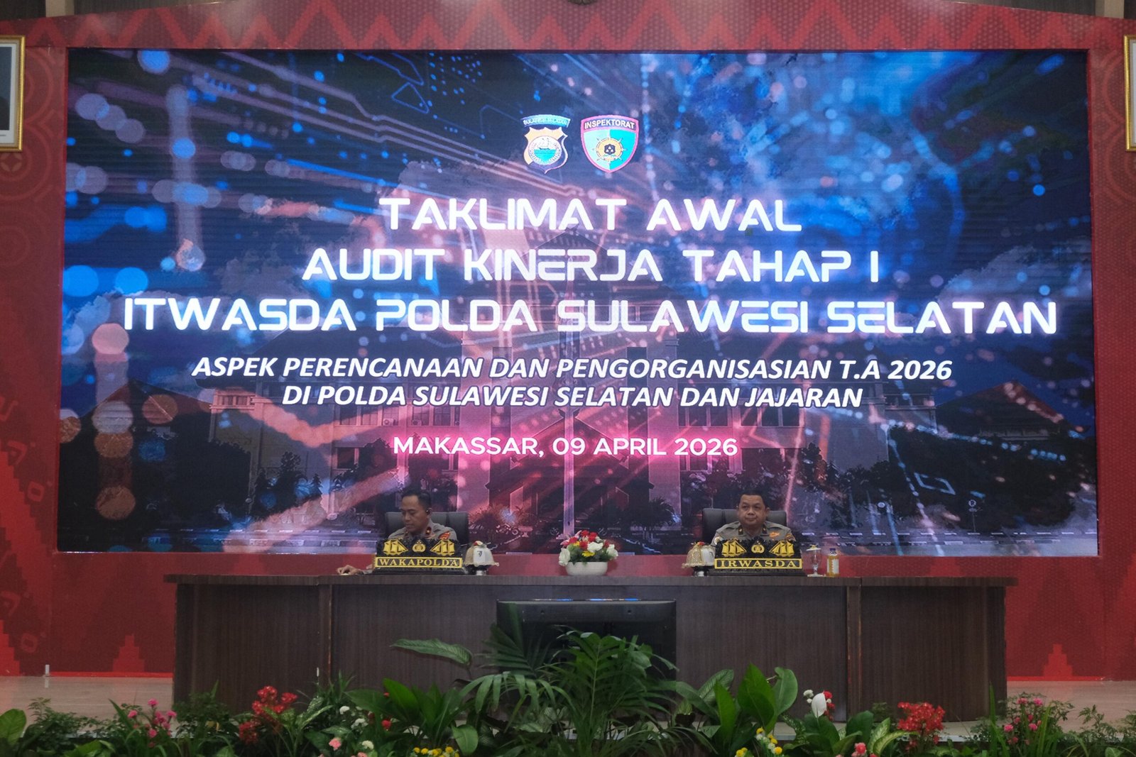 Sementara itu, dalam sambutannya, Wakapolda Sulsel menegaskan bahwa kegiatan audit kinerja merupakan bagian penting dalam mengevaluasi sistem kerja organisasi, khususnya dalam aspek perencanaan dan pengorganisasian.