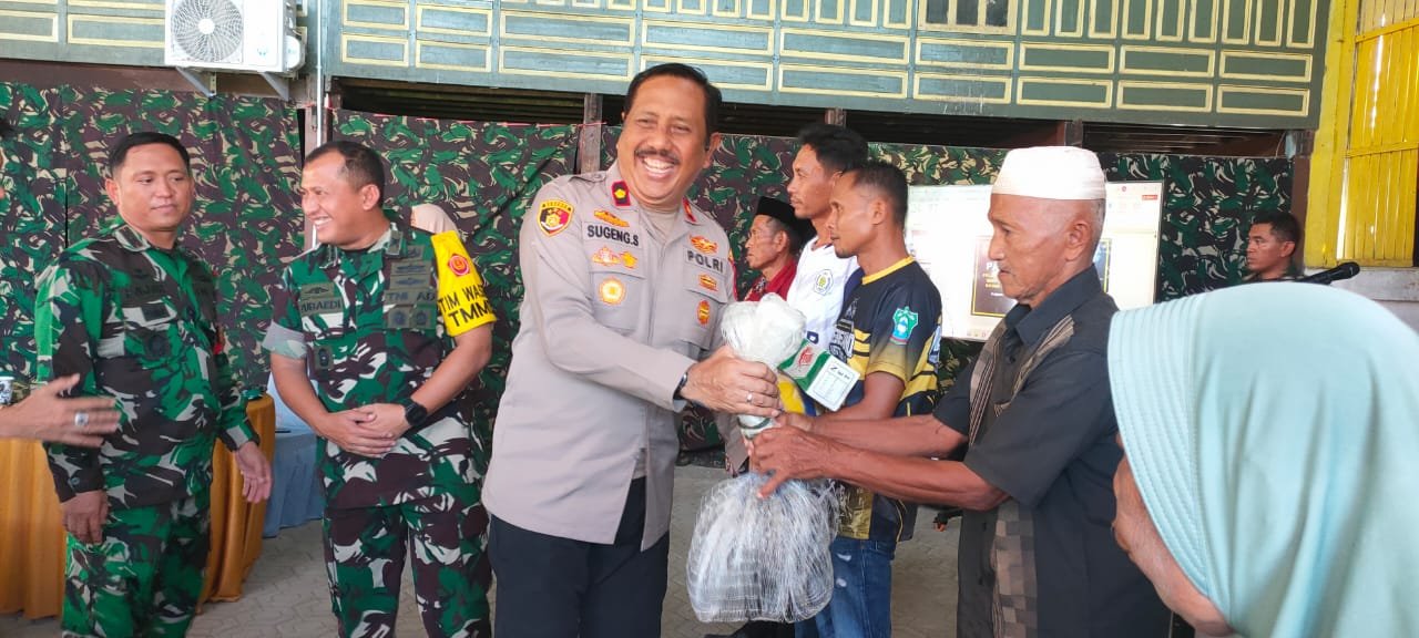 Kegiatan kunjungan ini meliputi peninjauan lokasi pembangunan fisik TMMD, seperti jalan desa dan rumah tidak layak huni (RTLH) di Kampung Kekeang Timur, serta penyerahan bantuan sosial berupa paket sembako, bola voli dan takraw beserta net, jaring ikan, dan perlengkapan alat salat kepada masyarakat.