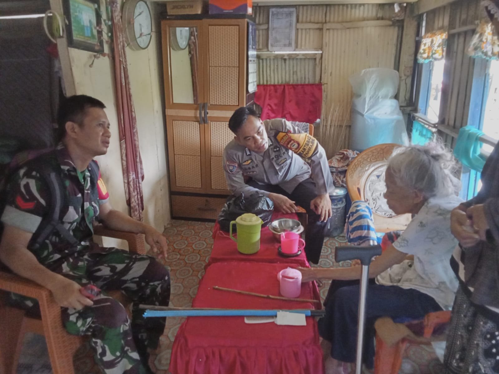 Menggunakan metode _door to door system_, keduanya hadir langsung untuk memastikan kondisi keamanan, kenyamanan, serta kesehatan Ibu Hawang yang tergolong kelompok rentan. Dalam kunjungan itu, Bripka Akbar dan Koptu Sulfikar mengecek kondisi rumah, berbincang dengan Ibu Hawang, serta menanyakan kebutuhan sehari-hari yang mungkin diperlukan.