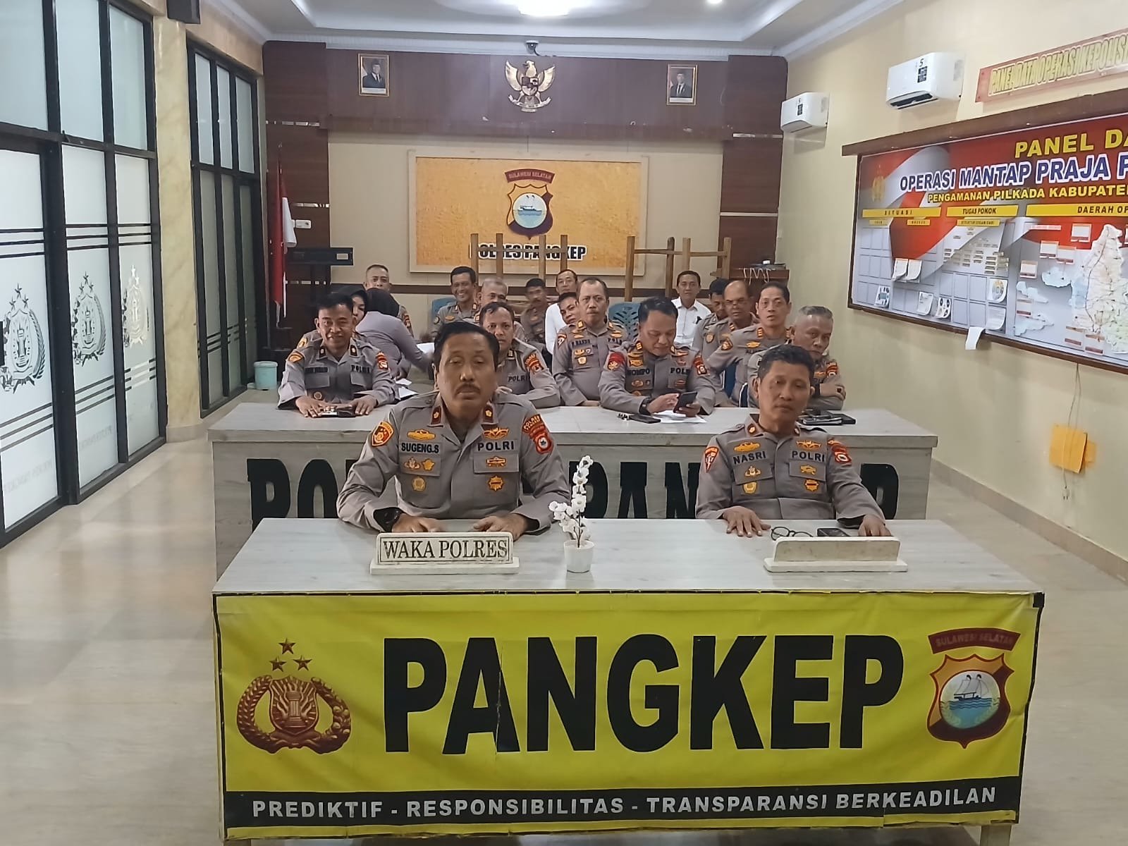 Bertempat di ruang Vicon Polres Pangkep, kegiatan Zoom Meeting diikuti oleh Wakapolres Pangkep Kompol Sugeng Suprijanto, S.Pd., M.H., Kabag Ops Kompol Nasri, S.Sos., para Pejabat Utama Polres, serta para Kapolsek jajaran Polres Pangkep.